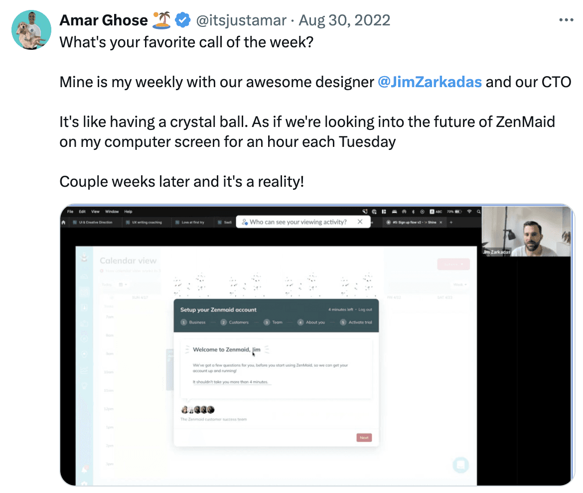 I spend 60% of my time building and growing SaaS products for our clients and myself, and 40% of my time sharing all this knowledge, through this mentorship and my social media content.